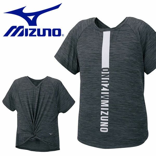 【すぐ使える100円割引クーポン配布中!】 2WAY Tシャツ ミズノ MIZUNO レディース 半袖 シャツ ランニング マラソン ジョギング トレーニング スポーツ ウェア シャツ ブラック 杢 黒 32MA0312 09 2020春夏新作 23%off