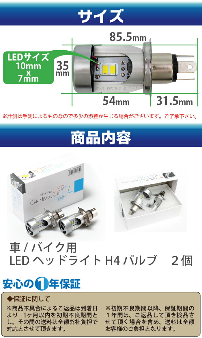 商品名 ムラのないFLIPチップ搭載 LEDヘッドライト H4(Hi-Lo) 25W 5600LM(2800LM x2)/ 6000K バイクや軽自動車に最適! ◆商品説明 ・手のひらサイズのコンパクト設計ながら、5600LMのパワフル発光! ・COBチップ搭載 ・高速冷却ファン搭載 ・超高速起動0.1秒 ・アルミヒートシンク構造で優れた放熱性 ・オールインワンタイプで、簡単装着 ・DC 9V-36V バイク、軽自動車に最適な明るさ! ◆商品仕様 ・電源:9V-36V ・明るさ:Hi:5600LM / Lo:5600LM ・発光色:6000K:純ホワイト ・耐久性:約50000時間 ・使用温度:−40℃〜120℃ 注意事項 ■バルブ形状が一致していても、スペース不足、レンズ内の距離等により設置不可となる場合があります。